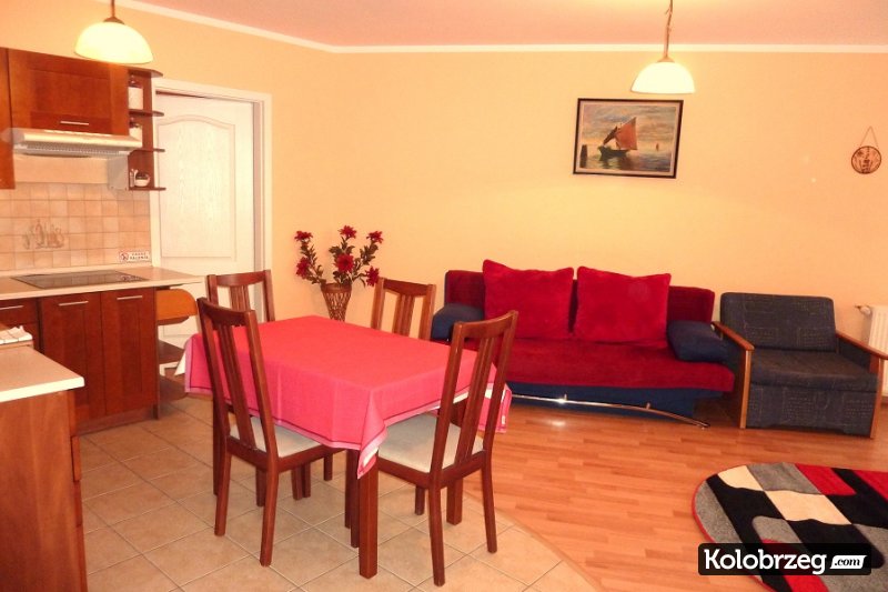 Apartament Morski - dwupokojowy (maksymalnie 5 osób dorosłych + dziecko) o powierzchni 43m2, 120m od morza (ul. Towarowa 17). Apartament znajduje się na 1. piętrze (nowoczesna winda) w nowym budynku. Bardzo słoneczny, dwustronny.