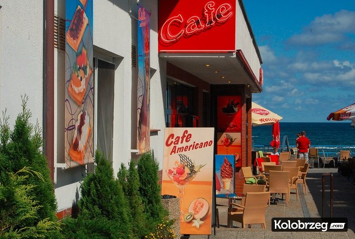 Cafe Americano to pierwsza i najstarsza od początku lat 90-tych kawiarnia na promenadzie przy latarni morskiej w Kołobrzegu z przepięknym widokiem na Morze Bałtyckie, falochron portu Kołobrzeg oraz spacerowe molo.